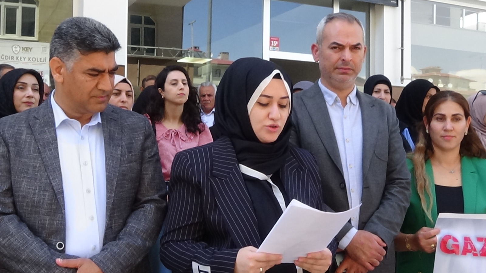 Bizler bugün AK Parti Iğdır il kadın kolları başkanlığı, teşkilatlarımız, kadın milletvekilleri, sivil toplum kuruluşu temsilcileri olarak buradayız. Şu anda 81 ilde AK Parti’li kadınlar olarak Gazzeli anneler için dimdik ayaktayız.