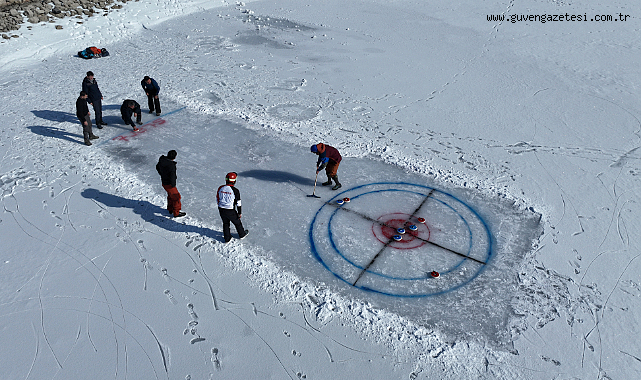 Erzincan'da donan göl üzerinde curling heyecanı