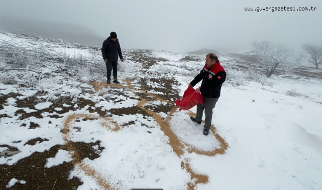 Erzincan'da yabani hayvanlar için karla kaplı arazilere yem bırakıldı