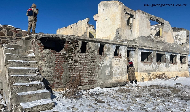 Erzurum'da karla kaplı kayalık alana saklanan 12 düzensiz göçmen yakalandı