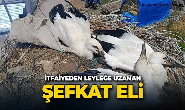 Kent merkezine yaklaşık 20 kilometre uzaklıktaki Altıntepe Mahallesi'nde elektrik direğindeki yuvada bulunan 3 leylekten birinin boynundaki poşet nedeniyle hareket zorluğu yaşadığını fark edenler, 112 Acil Çağrı Merkezinden destek istedi.