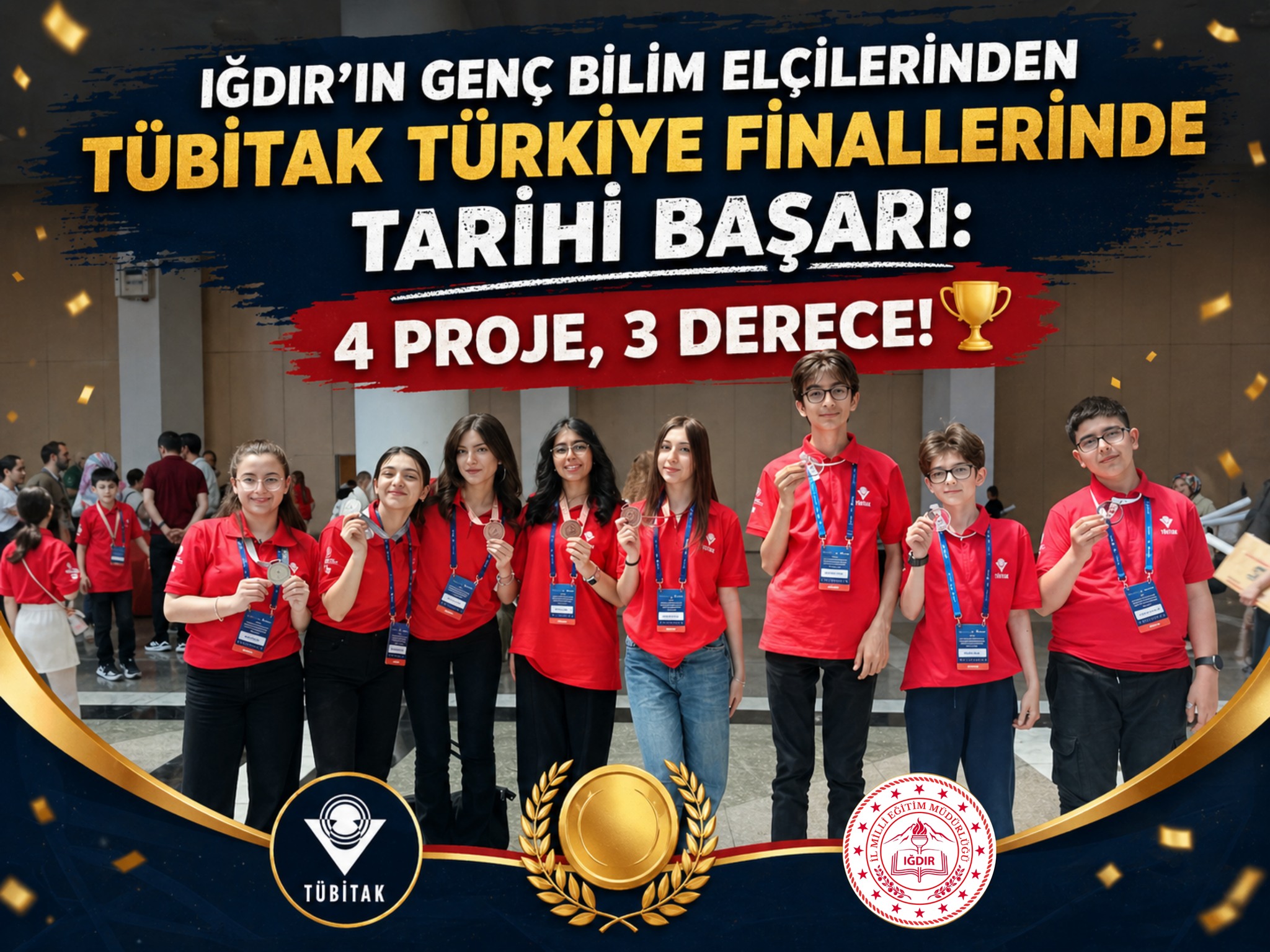 Iğdır’ın genç bilim elçileri, TÜBİTAK yarışmalarında elde ettikleri derecelerle Türkiye genelinde adından söz ettirdi. TÜBİTAK 2204-A Lise Öğrencileri ve 2204-B Ortaokul Öğrencileri Araştırma Projeleri Türkiye Finalleri’nde Iğdır’ı temsil eden öğrenciler, 4 projeyle katıldıkları yarışmada 3 önemli derece elde ederek büyük bir başarıya imza attı.