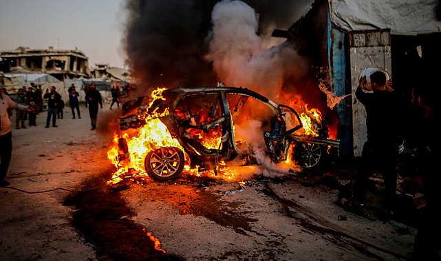 İsrail saldırısına hedef olan aracın yanması - İtfaiye ekiplerinin bölgeye gelmesi - Ekiplerin araçtaki yangını söndürmesi - Saldırının hedefi olan araçtaki Aljazeera muhabiri Muhammed Veşah'ın ambulansa nakledilmesi - Muhammed Veşah'ın şehadet parmağını kaldırması