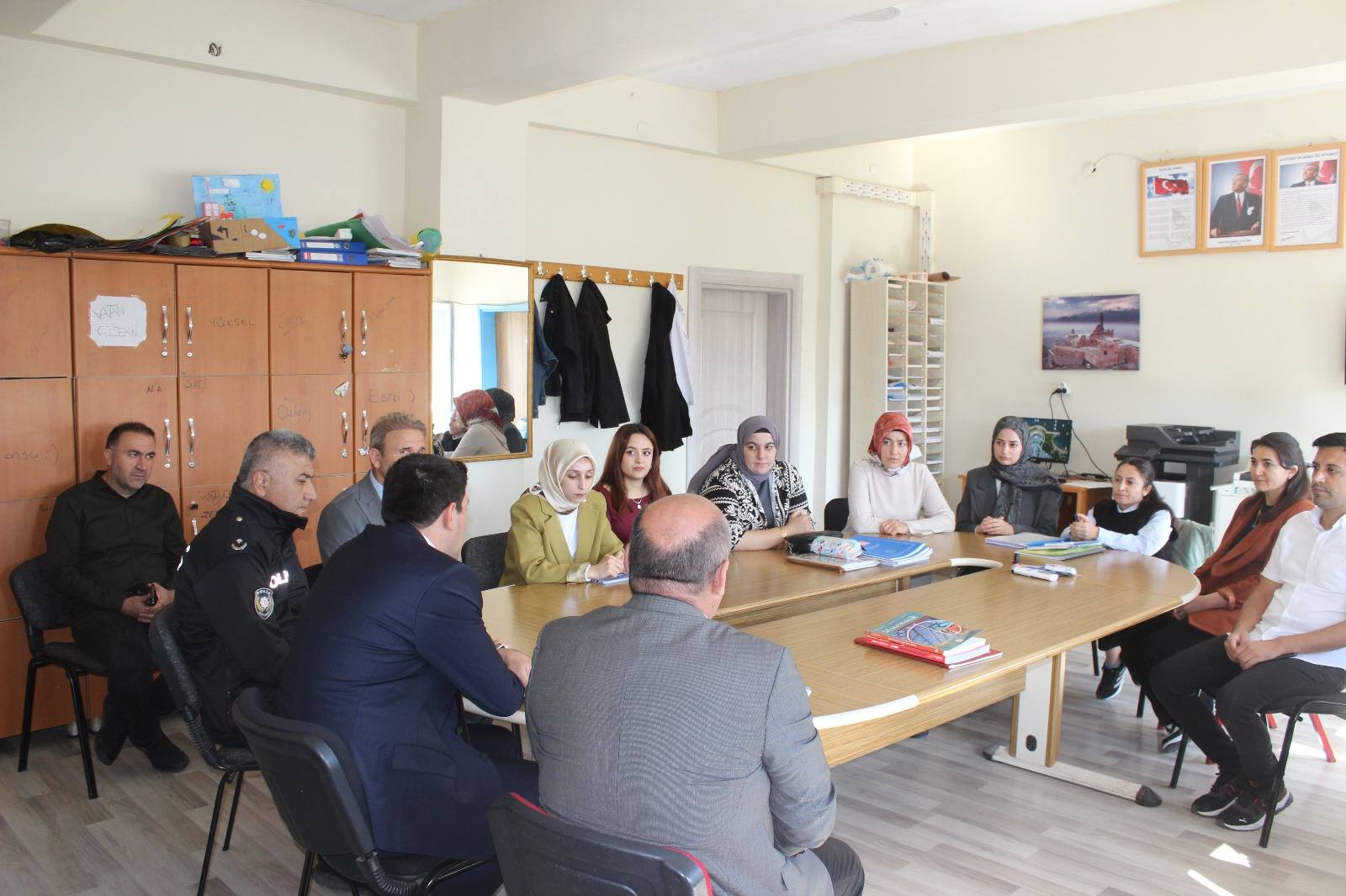 Okul yöneticilerinden eğitim-öğretim faaliyetleri, okulun genel durumu ve ihtiyaçları hakkında bilgi alan Kaymakam Erdoğan, öğretmenlerle de bir araya geldi. Öğretmenlerin görüş ve önerilerini dinleyen Erdoğan, fedakâr çalışmaları nedeniyle teşekkür ederek, eğitimde başarının en önemli unsurunun öğretmenlerin özverisi olduğunu vurguladı.