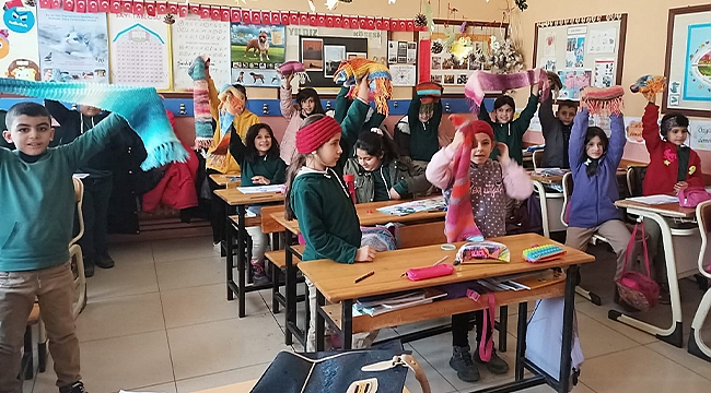 Türk Kadınlar Derneği Iğdır Şube Başkanı Sabiha Sever ve dernek üyeleri; Türk Kadınlar Derneği İstanbul Pendik Şubesi tarafından dokunan el emeği göz nuru atkı ve bereleri öğrencilere yıl başı hediyesi olarak dağıttı.