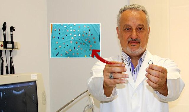 Yabancı cisim yutma ya da nefes borusuna kaçma şikayetiyle gelen hastaların çoğunlukla çocuklar olduğunu belirten Prof. Dr. Akçam, "10 yılda yaklaşık 350 çocuktan yabancı cisim çıkardık. Yemek borusunda cisim takılı kaldığı için yemek yiyemeyen, salyası devamlı dışarıya akan veya nefes borusuna kaçıp devamlı öksürük, solunum sıkıntısı olan çocuklarla karşılaşıyoruz" dedi.EN ÇOK MADENİ PARA