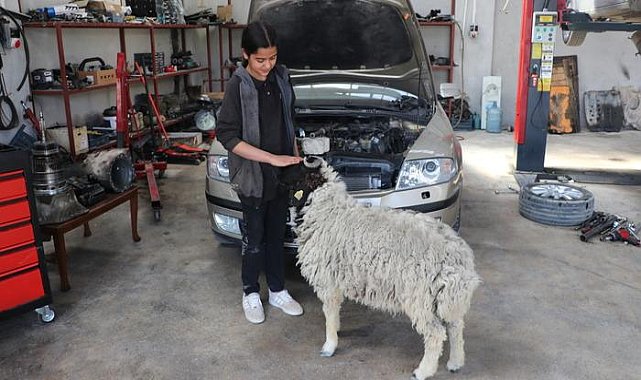 Hatay'ın Antakya ilçesinde 14 yaşındaki Nehir Habiboğlu, hediye edilen "Şakir" adını verdiği kuzuya babasının oto tamirhanesinde bakıyor.
